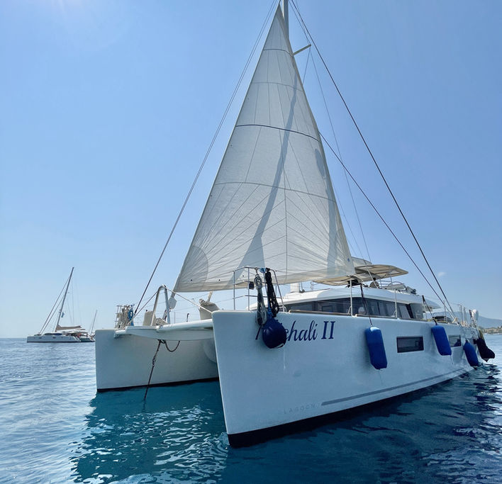 Built in fiberglass and designed by VPLP, she is powered by twin 150 hp D3 Volvo engines, delivering smooth and reliable cruising at 10 knots with a top speed of 12 knots. With 4 guest cabins, 2 crew cabins, and accommodation for up to 12 passengers, she is perfect for unforgettable sailing adventures. Equipped with electric windlasses and generous living areas, the Lagoon 620 offers the ideal balance of elegance and practicality at sea.